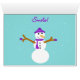 Bonhomme de neige utilisant les mitaines, le casquette, et l'écharpe pourpres avec "quand la vie vous donne la neige…" texte. À l'intérieur du "sourire !" avec le bonhomme de neige de sourire. Carte de voeux.