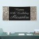 Décoration personnalisée élégante de mur de bannière de fête d'anniversaire d'argent de parties scintillantes-effet de Faux quarantième. La belle et de fête quarantième coutume de bannière d'anniversaire a imprimé avec les femmes d'invite de honneur nommées ! Image photographique de scintillement noir et argenté des étincelles pour célébrer le grand quarantième jour d'invite de honneur.