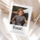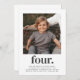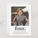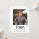 Une invitation moderne 4th Birthday avec votre propre photo et le mot 'four.' en dessous.