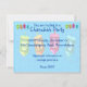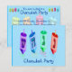 Quatre dreidels multicolores montrant la nonne, le gimel, le hei, et le tibia. Feinte de Nes Gadol Hayah. Une conception de Chanukah. Invitations personnalisables de partie de Chanukah--ajoutez et customisez avec votre information.