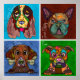 Quatre visages uniques de chien moche avec des motifs abstraits audacieux et colorés : French Bulldog, Springer Spaniel, Boxer, English Pointer. Populaire auprès des amoureux de les chiens et amoureux des animaux de compagnie et des amoureux de les chiens secourus.