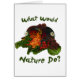 Une belle aquarelle colorée d'une cornucopie rustique de jardin de campagne, avec fraises rouges, bleuets, nageoires, raisins violets, carottes orange vif, et plus encore, encadrée par les mots, Que ferait la nature ? Parfait pour les marchés agricoles, les produits biologiques, le shopping ou tout cadre rustique.