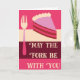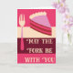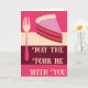 Cette carte d'anniversaire douce et drôle comporte le message « Que la fourchette soit avec vous » sur le devant et présente une illustration audacieuse de style rétro moderne d'une tranche de gâteau appétissante et d'une fourchette dans des tons rose, marron et crème. Laissez le message à l'intérieur tel quel ou utilisez le champ de modèle pour créer votre propre message personnalisé à l'intérieur de cette carte d'anniversaire.