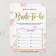 Cette moderne "Quel âge avait la future mariée" présente un fond floral rose avec des éclaboussures de paillettes dorées. Le texte est écrit dans un mélange d'une police de calligraphie ludique et d'une police sans empattement moderne, cette carte Quel âge avait la future mariée est personnalisée avec le nom de la future mariée et la date de la douche nuptiale.