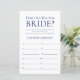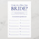 Cette feuille de jeu simple, minimaliste et moderne sur fond bleu marine "Quel âge avait la mariée ?" est parfaite pour n'importe quelle fête prénuptiale. Ce jeu amusant et facile est sûr de faire rire à n'importe quelle fête ! Demandez à la famille et aux amis de vous envoyer des photos de la mariée à différents âges et faites-les imprimer. Numérotez-les et placez-les près de ces feuilles de jeu. Donnez simplement une feuille à chaque invité (n'oubliez pas les stylos) et laissez la compétition commencer ! Vous serez étonné de voir combien de personnes connaissent vraiment l'âge de la mariée. En quelques secondes, vous pouvez voir à quoi ressemblera votre feuille de jeu. Sélectionnez simplement "Personnaliser ce modèle" et tapez le nom de la mariée.