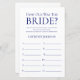 Cette feuille de jeu de baby shower "How Old Was The Bride?" simple, minimaliste et moderne avec une couleur bleu marine est parfaite pour n'importe quelle fête. Ce jeu amusant et facile va certainement apporter beaucoup de rires à n'importe quelle fête ! Demandez à la famille et aux amis de vous envoyer des photos de la mariée à différents âges et faites-les imprimer. Numéroter les et les placer près de ces feuilles de jeu. Donnez simplement une feuille à chaque invité (n'oubliez pas les stylos) et laissez la compétition commencer ! Vous serez étonné de voir combien de personnes connaissent vraiment l'âge de la mariée. En quelques secondes, vous pouvez voir à quoi ressemblera votre feuille de jeu. Il suffit de sélectionner "Personnaliser ce modèle" et de taper le nom de la mariée.