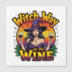 Une jolie sorcière tenant deux verres de vin et une typographie avec Quelle voie vers le vin.