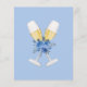 Élégant script de calligraphie Quelque chose de bleu Fête des mariées à thème Guess the Dress Jeu amusant avec des fleurs d'aquarelle. De l'autre côté, on trouve des verres de champagne avec un bouquet.
