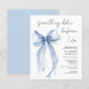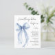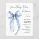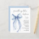 Elégante invitation à la douche nuptiale budget avec une délicate aquarelle d'un arc coquette bleu et "quelque chose de bleu avant moi" dans un script chic. Ce papier semi-brillant budgétaire est similaire en poids au papier photo. Une version plus épaisse 5x7 traditionnelle de stock de carte est également disponible (message nous pour le lien).