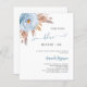 Pour une douche nuptiale de style boho moderne. Fond blanc. Décoré d'une rose bleue poussiéreuse, d'une pelouse de pampas. Personnalisez et ajoutez un nom et des détails du parti. Texte : Quelque chose de bleu avant moi. 1 feuille = 1 invitation de douche nuptiale imprimé bord à bord.