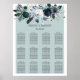 Le tableau de sièges mariage correspond à notre collection de mariages Quelque chose de bleu floral, avec des feuilles d'hiver aquarelle avec des pivoines et des roses dans des tons élégants de bleu, bleu poussiéreux, ivoire et blanc. Les plumes ajoutent une touche boho à cette collection élégante.