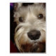 Cette carte présente un Schnauzer miniature blanc et curieux. Il regarde directement dans la caméra, se demandant ce que vous faites. Ce bouton est parfait pour l'amour du chien et les amateurs de Mini surtout!