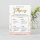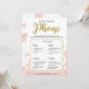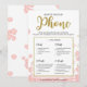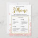 Ce "Qu'est-ce que vous avez sur votre téléphone" floral moderne présente un fond floral rose avec des éclaboussures de paillettes dorées. Le texte est écrit dans un mélange d'une police de calligraphie ludique et d'une police sans empattement moderne, cette carte "Qu'est-ce que vous avez sur votre téléphone" est personnalisée avec le nom de la future mariée et la date de la fête de mariage.