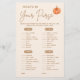 Découvrez l'ajout parfait à toute célébration d'automne avec le "What's in Your Purse? Automne Baby shower Citrouille Jeu." Adapté pour la saison, ce jeu engageant mêle charmant thème citrouille à une ambiance festive d'automne, ce qui en fait un choix charmant pour tout petit baby shower citrouille. Doté d’adorables motifs de citrouilles orange et bleu, il s’agit d’une activité polyvalente et sans distinction de genre qui s’intègre parfaitement dans une douche pour bébé garçon ou petite fille. Que vous planifiez une douche citrouille boho ou que vous recherchiez des idées de baby shower citrouille lil unique, ce jeu assure le plaisir et le rire pour tous vos invités!