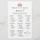 Carte de jeu de baby shower de mariage élégant et amusant « qu'est-ce qu'il y a dans votre sac à main ». Jeu amusant à jouer lors de votre fête de baby shower de mariage. Design moderne et minimaliste avec un petit sac à main / pochette rose blush adorable avec des points allant de 1 point à 100 points. La carte de jeu peut être personnalisée avec votre propre système de points ainsi que les listes d'objets.