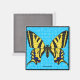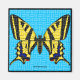 Dessin numérique d'un papillon Papilio glaucus, montrant ses ailes noires et jaunes sur un fond bleu.