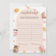 Cette adorable carte de jeu de baby shower présente un charmant thème animal de ferme avec de jolies illustrations d'une vache, lapin, poussin, cheval et cochon, entouré de fleurs joyeuses et d'un soleil souriant. Les couleurs pastel douces et le design fantaisiste créent une atmosphère chaleureuse et accueillante. Visitez notre boutique pour voir toute notre collection Brown d'animaux de ferme mignons.