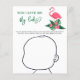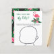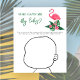 Baby shower invitation design avec flamingo rose avec frondes de feuilles de palmier vert luxuriant et fleurs d'hibiscus tropical. "Aloha Baby". Un motif à fleurs tropicales aux couleurs arrière - plans noires habille le dos de la carte.
