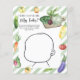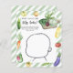 "Un bébé local est en route". Célébrez avec cette fête de baby shower à thème potager d'aquarelle ! Aquarelle concombre, oignon, aubergine, courgettes, tomates jaunes et rouges, radis, carottes, poivre chaud, poivre jaune doux, pois et chou, brocoli et betterave sur une planche à découper. Aquarelle de récolte biologique.