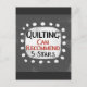 Un design typographique amusant qui dit "Quilting : Can Recommend, 5 Etoiles". C'est du texte en noir et rouge sur un rectangle blanc avec des points blancs amusants autour, le tout sur un arrière - plan gris.