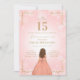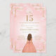 Quinceanera girl Birthday Party Invitation, présente des teintes rose et corail. Tout le texte est modifiable. Parfait pour un thème de 15e anniversaire.