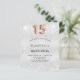 Une invitation moderne, élégante et glamour pour une Quinceañera fille, 15e anniversaire fête. Un arrière - plan faux argenté, décoré de confettis. Personnalisez et ajoutez votre nom et les détails de votre fête. Le numéro 15 est écrit avec une police rose de style ballon d'or, script.
