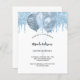 Un arrière - plan blanc. Décoré avec des gouttes de parties scintillant bleu clair, l'apparence de la peinture goutte à goutte et des ballons. Personnalisez et un nom et des détails du parti. 1 feuille = 1 invite imprimé bord à bord.