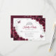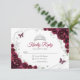 Carte de réponse RSVP Quinceanera fleurs argent et bourgogne. Caractéristiques, police de caractères script, papillons argentés, roses aquarelles et diadème. Parfait pour une célébration glamour de style princesse élégante. Personnalisez avec vos propres détails.