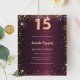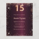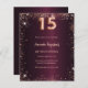 Pour un élégant Quinceañera, 15ème anniversaire. Une couleur arrière - plan dégradé bordeaux. Décoré de faux éclats d'or rose. Personnalisez et ajoutez un nom et des détails du parti. Le nom est écrit avec un script de style écrit à la main. 1 feuille = 1 invite imprimé bord à bord.