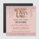 Des gouttes de diamant rose, arrière - plan rose millénaire, avec une typographie de nom de script sophistiquée. Faux rose or 15 ballons texte. Idéal pour les fêtes de coing. Tout le texte est réglable. Fête du 15e anniversaire Sauvegarder la date magnets