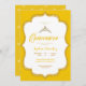 Cette jolie liste est pour une invitation à célébrer Quinceanera jaune et or. Comprend une police de script, des coeurs d'or sur le dos, et une tiara. Design classique avec parties scintillant en or. Parfait pour une élégante célébration de glamour.