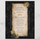 REMARQUE : Ce produit n'est qu'une invitation sur papier. Il n'inclut pas les dosettes ou les rubans, qui peuvent être ajoutés séparément par vous pour le transformer en un véritable défilement. N’hésitez pas à m’envoyer un message si vous désirez des ressources supplémentaires pour les dosettes, les finitions ou les rubans utilisés dans l’exemple de maquette. Concevez vos propres invitations de défilement de luxe do-it-yourself avec une touche d'élégance, avec des tons noir et or captivants, en utilisant un modèle facile et modifiable. Respectez simplement les instructions de découpe fournies et remontez-les avec ou sans une poignée ou un ruban pour évoquer une atmosphère de conte médiéval charmant. Illustré par Raphaela Wilson, l'oeuvre originale est ornée de roses d'aquarelle, noirs et or, de confettis de papillon jaune métallique, d'une couronne de reine vintage ou d'une tiare de princesse, et d'une frise en fibre de fantaisie luxueuse présentant un motif de robe royale. Le modèle modifiable adaptable comprend des instructions de largeur de 5 pouces, vous permettant de customiser la largeur de vos invitations à défiler selon vos préférences. Maintenez la taille standard de papier parchemin de 8,5 po x 11 po, en utilisant les lignes de découpe de 5 po pour créer des rouleaux d'invitation en noir et or quinceañera, parfaitement adapté pour une poignée ou une tige de 6 po. Sélectionnez du papier mat pour un laminage plus lisse, car il offre un stock plus mince par rapport à d'autres choix de papeterie. Ces élégantes invitations florales noires quinceañera sont polyvalentes, également adaptées aux mariages gothiques, masquerade de fêtes de 16 ans sucrées, baby showers fantaisistes pour filles, douches de mariée de contes de fées, et d'autres événements importants. Améliorez le design de conte de fées de fantaisie en personnalisant l'élégante calligraphie de script noir ("My Quinceañera") et la typographie moderne pour s'aligner sur vos préférences. N'hésitez pas à réorganiser les éléments d'art, tels que la bordure, les roses ou le vieux papier parchemin usé, pour accueillir une photo glamour "mis quince años" ou toute autre image désirée. Avec la texture de parchemin de défilement antique ornant les deux côtés, ces luxueuses invitations de défilement personnalisées do-it-yourself rayonnent de sophistication lorsqu'elles sont enroulées, ce qui en fait un choix enchanteur pour diverses célébrations. Catégorie : invitations de mariage à défiler avec papillons; invitations de mariage à défiler à la main; et invitations à défiler à do-it-yourself noir et or quinceanera. Couleurs de la soirée noir et or : noir, tan, marron clair, crème, beige, jaune champagne or, blanc.
