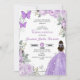 Purple Lilac Aquarelle Florale Quinceanera Invitation Couleur d'eau violette lilas florale Quinceanera invitation à la célébration. En vedette brune fille en robe de robe de bal, police de script, papillons en argent, rose et tiara. Parfait pour une élégante célébration de glamour de style princesse. Personnalisez avec vos propres détails