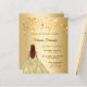 Un arrière - plan à l'allure d'or. Décoré d'étoiles dorées et d'une fille portant une tiare et une robe. Personnalisez et ajoutez un nom et des détails. 1 feuille = 1 invite imprimé bord à bord.