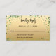 Avant : Un arrière - plan à dégradé doré décoré de confettis verts. Personnalisez et ajoutez votre nom et vos dates. Dos : une robe verte et des confettis verts.