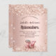 Un arrière - plan rose à dégradé d'or décoré de confettis et d'un chariot vintage romantique. Personnalisez et ajoutez son nom, les détails de la fête. 1 feuille = 1 invite imprimé bord à bord.