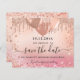 Une petite fille et tendance Enregistrer la carte Date pour une Quinceañera, 15e anniversaire fête. Un arrière - plan rose vif, à dégradé d'or rose, décoré de gouttes de parties scintillant, de mousseux et de ballons. Personnalisez et ajoutez une date et un nom/âge. Le texte : Save the Date est écrit avec un grand script de style à la main tendance.