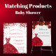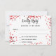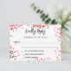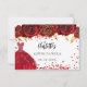 Avant : Un arrière - plan blanc décoré de confettis rouges. Personnalisez et ajoutez votre nom et vos dates. Dos : une robe rouge et des roses rouges.