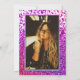 Un invitation moderne, assez chic et élégant en parties scintillant violette avec des lumières de bouquins avec une photo à l'arrière. Quinceañera invitation de célébration avec un arrière - plan blanc et un cadre mauve sombre glittery. Parfait pour une princesse quinceañera, parfait pour elle, la fashionista qui aime le motif moderne et glam.