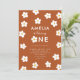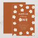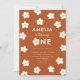 Customisez cette invitation pour une fille à fêter l'anniversaire de la rouille ! Présente des fleurs blanches sur arrière - plan en terre cuite. Parfait pour les thèmes printemps ou boho. Le texte dit "XX tourne UN !"