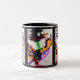Qu'est-ce que Da'Flock?! Commencez votre journée avec ce fou de 11 oz. mug de corneille à deux tons. Art abstrait original de l'artiste Sara Lytle.