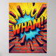 Cette affiche est un hommage explosif aux moments les plus dramatiques de la bande dessinée classique de super-héros. Il capture la seconde de l'impact, où le mot 3D "WHAM !" agit comme une onde de choc, explosant à travers un mur de briques et envoyant des pièces voler. Cette oeuvre est une scène statique mais incroyablement dynamique qui célèbre parfaitement une bande dessinée quintessence. Avec ses couleurs vibrantes, ses points de demi-teintes classiques et son sens du mouvement puissant, cette pièce est plus qu’un simple décor, c’est un hommage à l’émotion de la pop culture et une pièce de déclaration fantastique pour tous les amateurs de bandes dessinées rétro et de design audacieux.