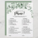 Ce qui est sur votre téléphone eucalyptus jeu de douche nuptiale est une activité parfaite pour une fête de la nuptiale rustique douche. Le design présente de beaux feuilles d'eucalyptus vert aquarelle.