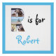 Téléchargez des photos pour remplir la lettre R et ajoutez le nom de votre enfant pour créer une affiche bleue spéciale pour la chambre de votre enfant.