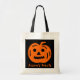 Un tour personnalisé ou un sac traiteur avec le visage citrouille en halloween sculpté. Illustration de tête de citrouille orange mignonne et noire pour le tour ou le traitement. Accessoires pour enfants Halloween avec nom personnalisé.