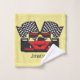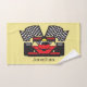 Serviette de bain Race Car Design Ensemble avec couleur arrière - plan personnalisable et texte sur les trois pièces.