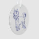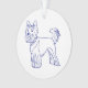 Design classique en bleu et blanc. Dessin au trait bleu de la race de chien Yorkshire Terrier sur fond blanc.