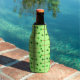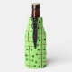 Ce glacière de bouteille a un design moderne du milieu du siècle de lignes verticales noires avec des lignes verticales marron et des cercles verts.