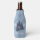 Ce glacière de bouteille présente un bel agencement d'arbres de Noël stylisés et de flocons de neige en marine foncée sur un arrière - plan bleu ciel à effet texturé. Un texte optionnel "Joyeux Fêtes" et un modèle ont été fournis pour ajouter votre nom et/ou un autre texte. Cherchez ID861 à ID864 pour voir d'autres options de couleur et d'autres produits dans ce moderne, design de Noël..