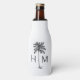 This monogrammed coastal inspired bottle cooler features a preppy black palm palmetto tree with a monogram that you can personalize with your choice of initials on the front and special text on the back. Make great personalized party favors.